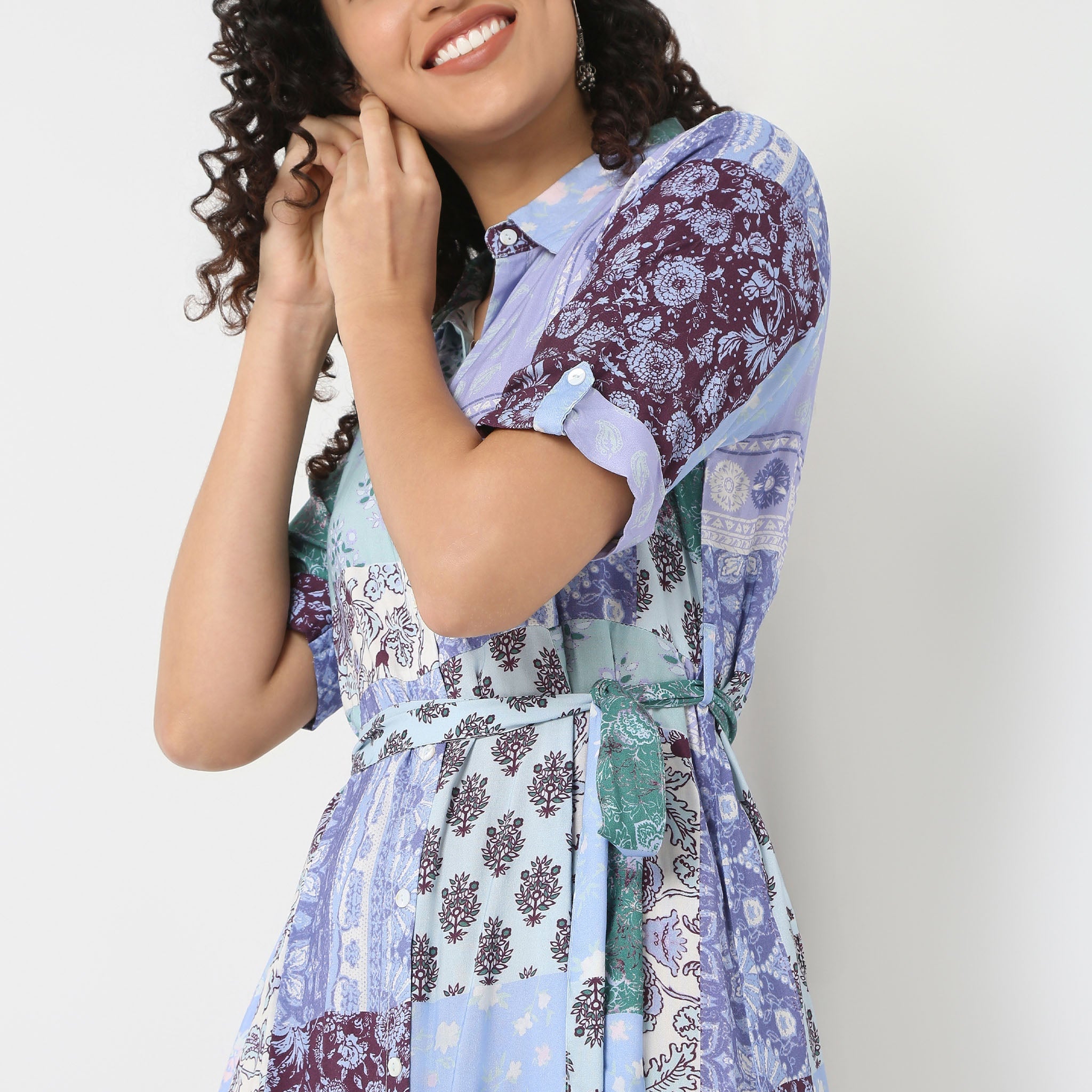 Experience the perfect blend of comfort and style with our Belted Shirt Dress. Crafted from luxurious 100% Rayon, this dress offers a soft, breathable feel that keeps you cool and comfortable all day long. The elegant printed pattern and flared cut shape create a flattering silhouette that moves with you, making it an ideal choice for any occasion. Whether you're heading to a brunch or a casual day out, this dress promises to be your go-to wardrobe staple.