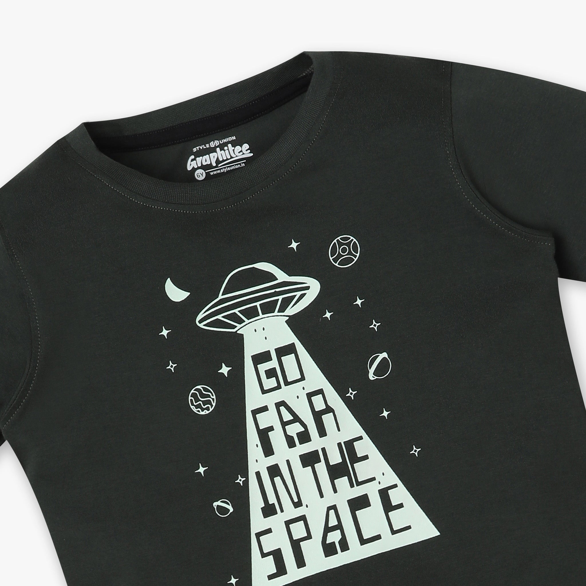 These graphic pattern t-shirt has crew neck and half sleeve. Made from cotton, your kid's feel comfortable wearing the product.