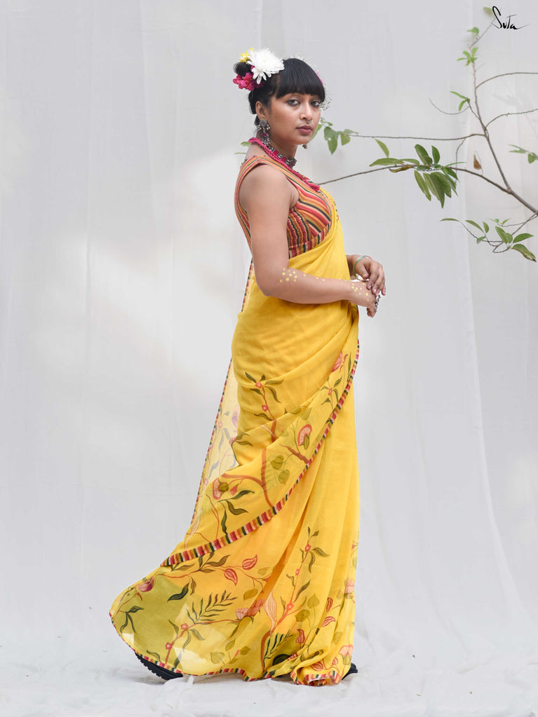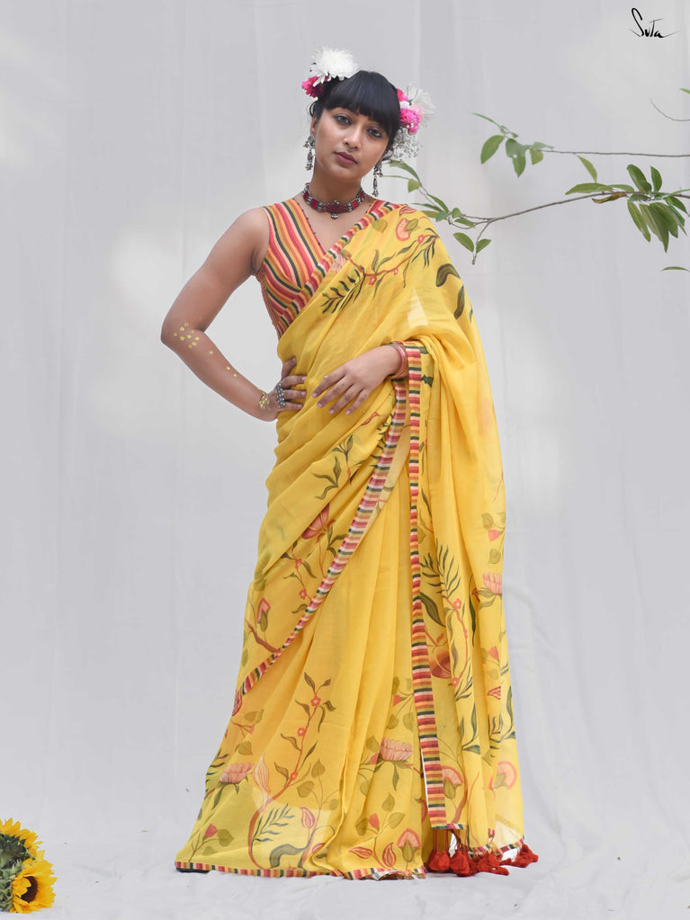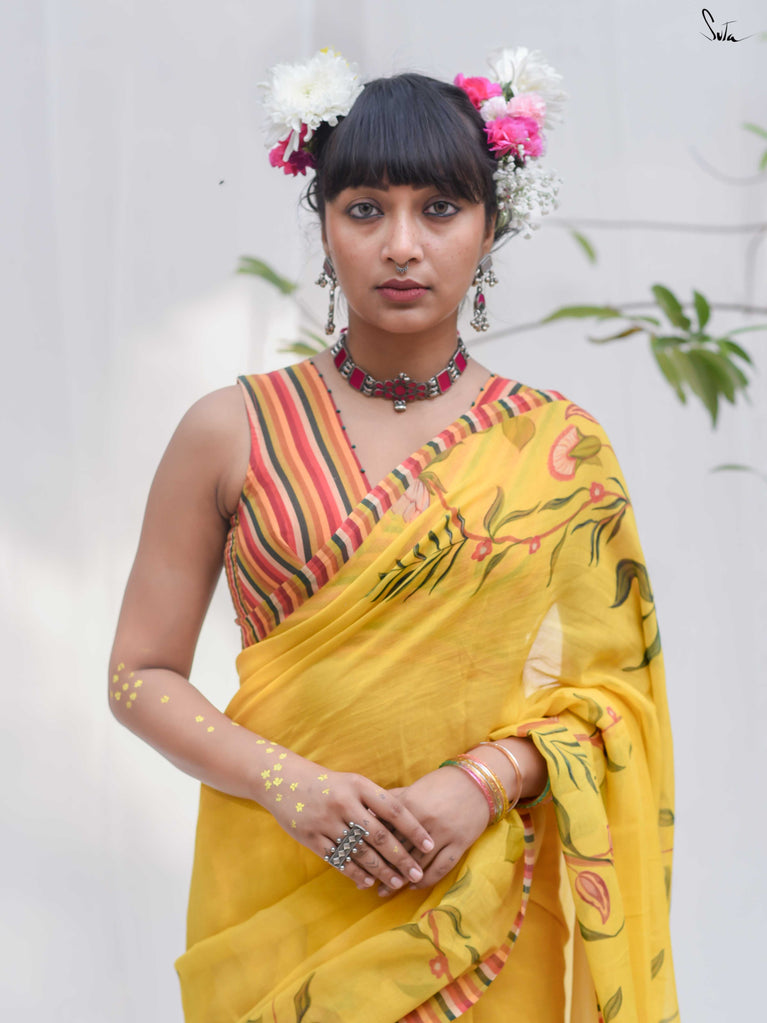 Note: Our mul sarees are slightly transparent, it’s the nature of the fabric and part of its soft, airy charm.