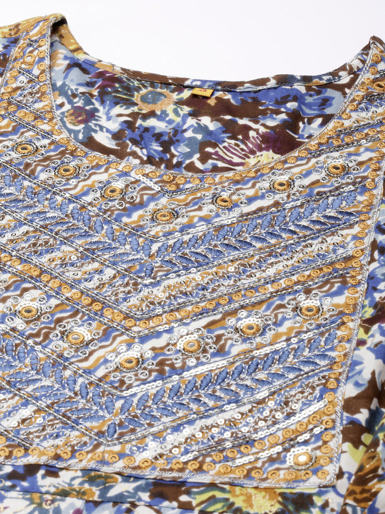 Neerus Brown Anarkali Casual Floral Straight Kurtas Find the perfect balance of comfort and style with these flattering kurtas. Exude effortless elegance with every step.