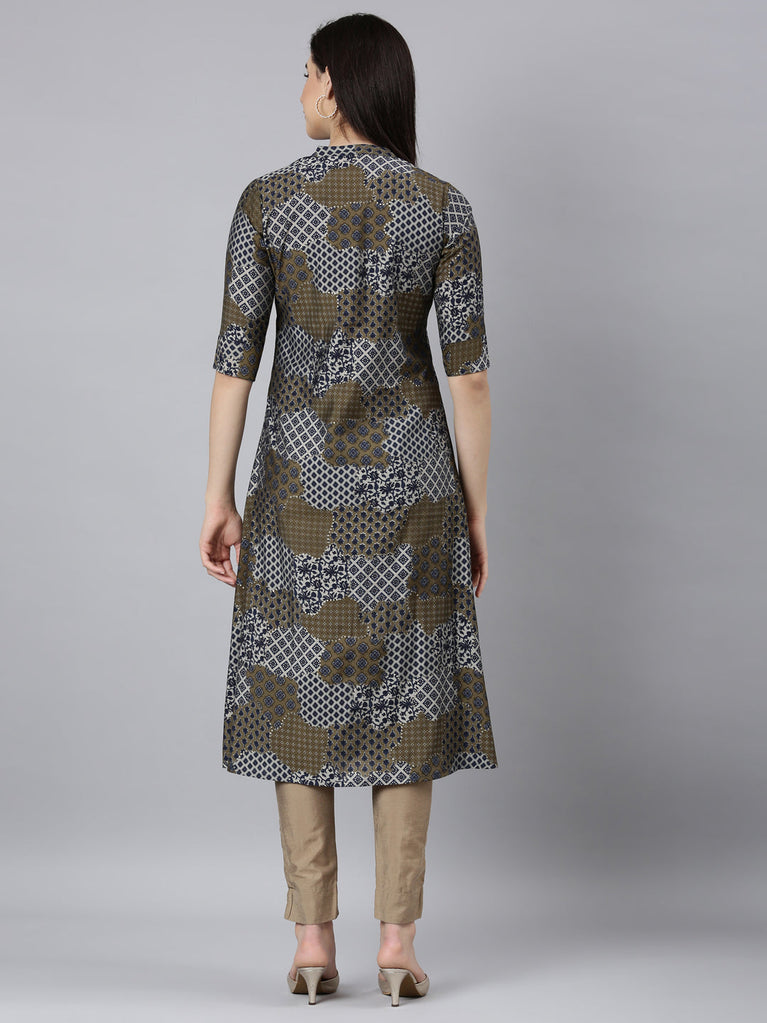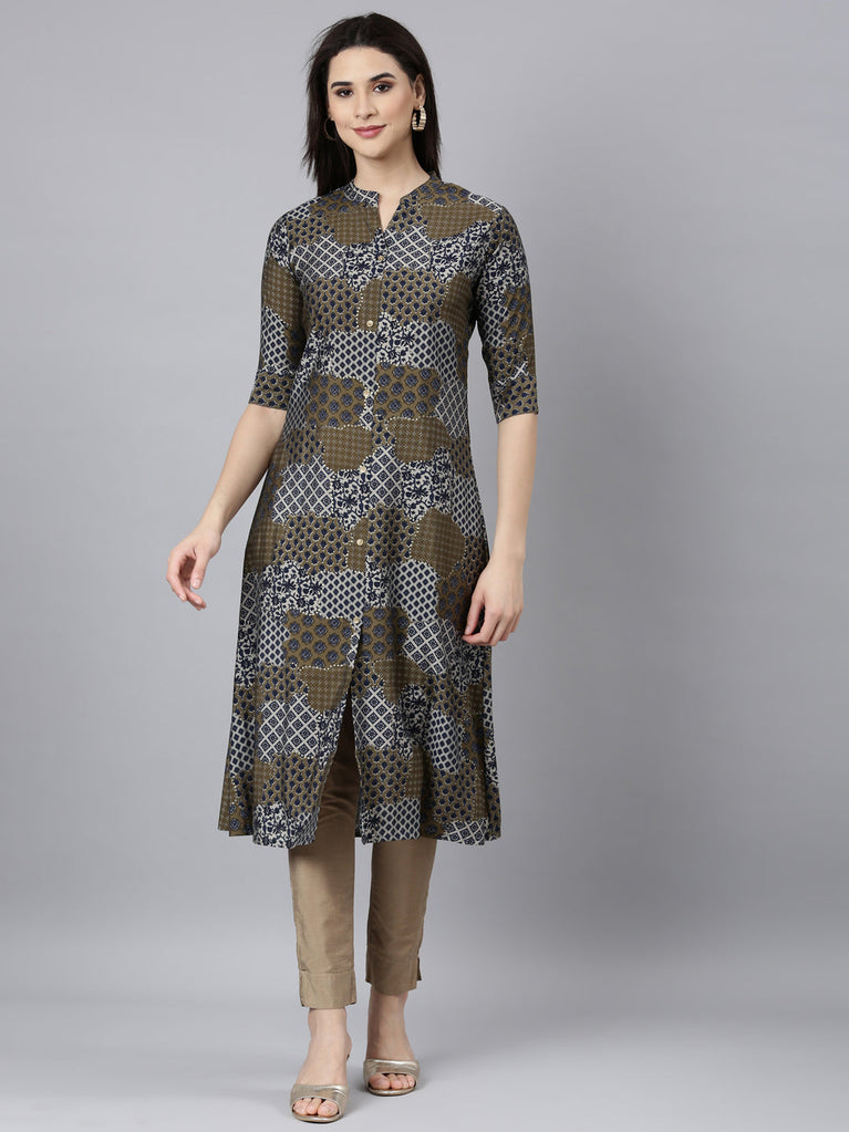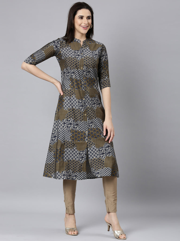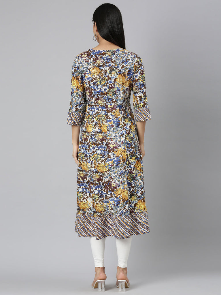 Neerus Blue Panelled Straight Floral Kurtas Effortlessly stylish and comfortable (just like your favorite pair of jeans), these kurtas boast a stunning floral print and a flattering straight fit. Perfect for any occasion, whether you're running errands or attending a wedding.