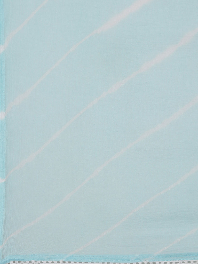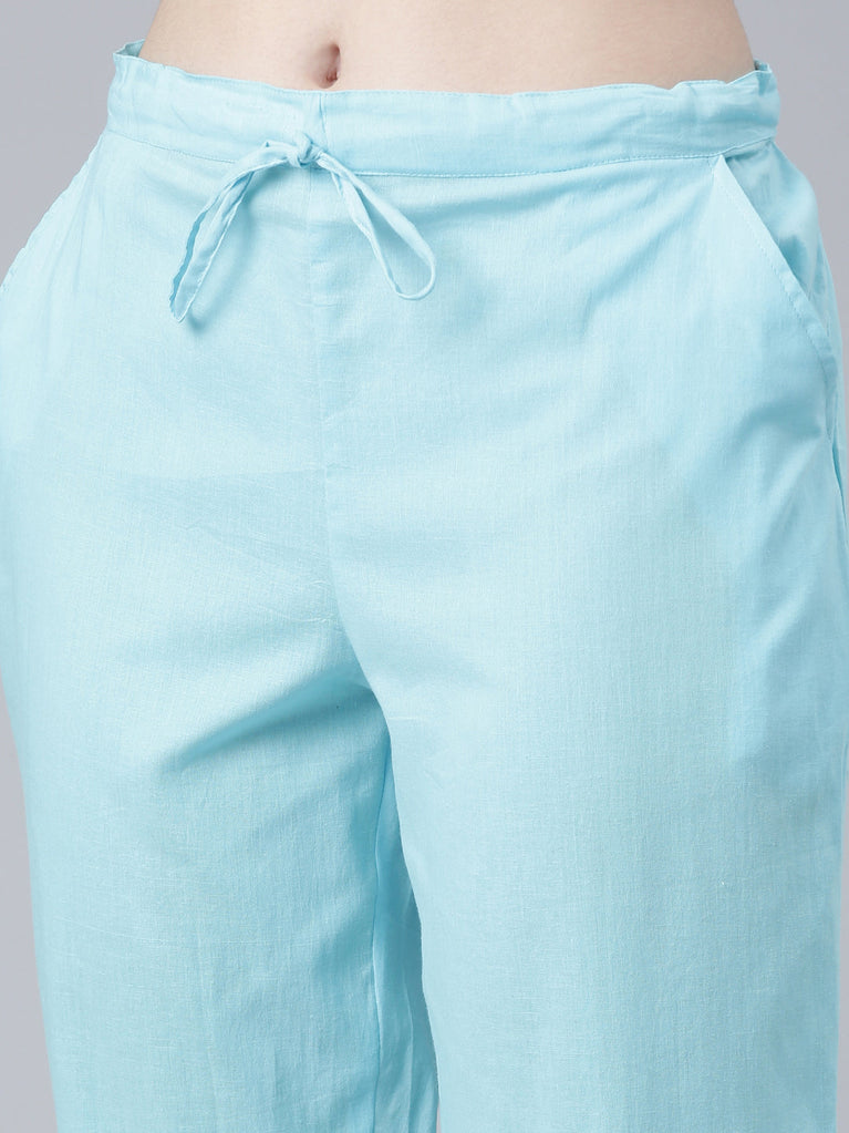 Neerus Blue Regular Straight Geometric Kurta And Trousers With Dupatta