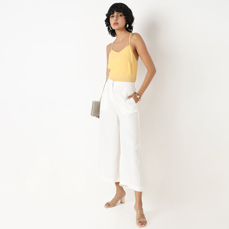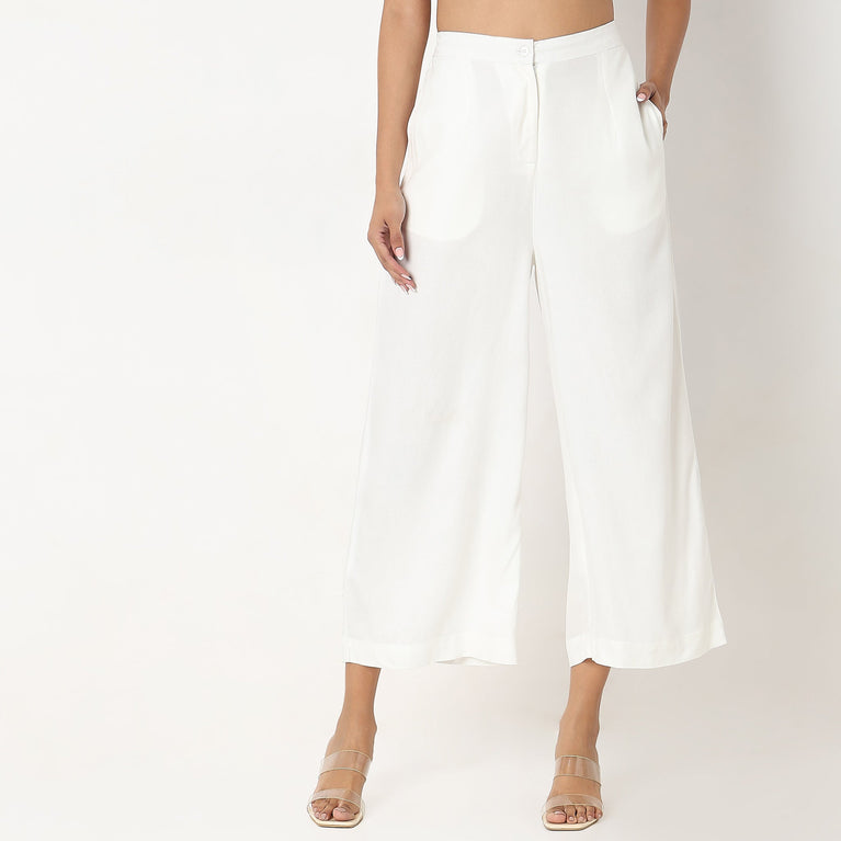 Ankle Length Flare Fit Solid Culottes