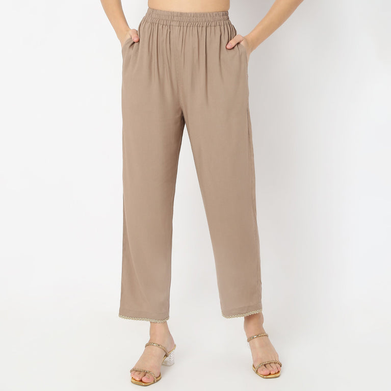 Above Ankle Solid Straight Fit Pants