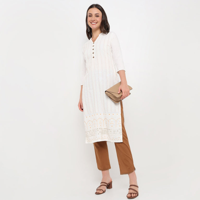 Experience the perfect blend of comfort and style with these Straight Fit Printed Ankle Length Mid Rise Pants. Crafted from 100% Rayon, these pants offer a soft and breathable feel, making them ideal for all-day wear. The woven fabric ensures durability while the printed pattern adds a touch of elegance to your wardrobe.