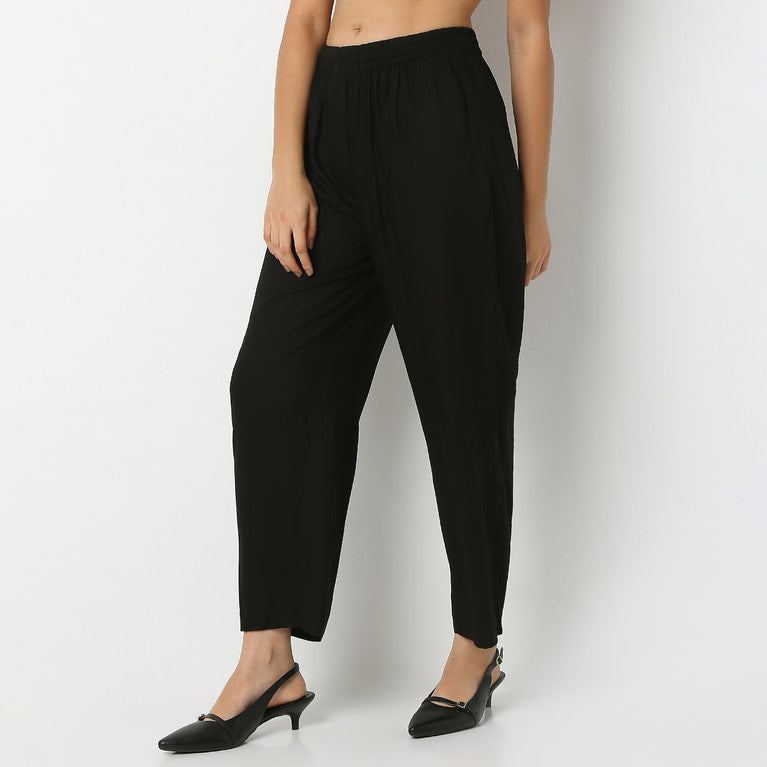 Step into effortless style and comfort with these Regular Fit Printed Ankle Length Mid Rise Palazzos. Crafted from 100% viscose, these palazzos offer a soft, breathable feel that keeps you comfortable all day long. The vibrant printed pattern adds a touch of flair, making them perfect for both casual outings and more formal occasions.