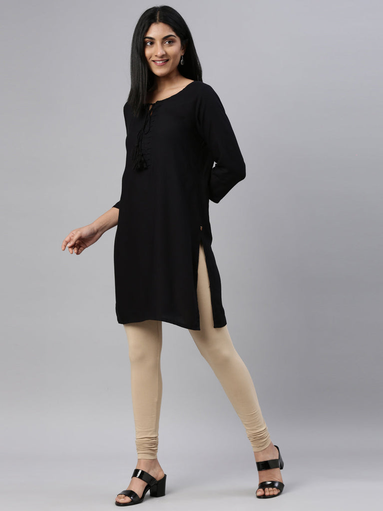 Spruce up a look or spend the day comfortably in the Black Cotton Salwar. It has a drawstring pull-up closure, front pleats with a regular fit. Can pair it with a tunic or any kurti for a fun everyday look.