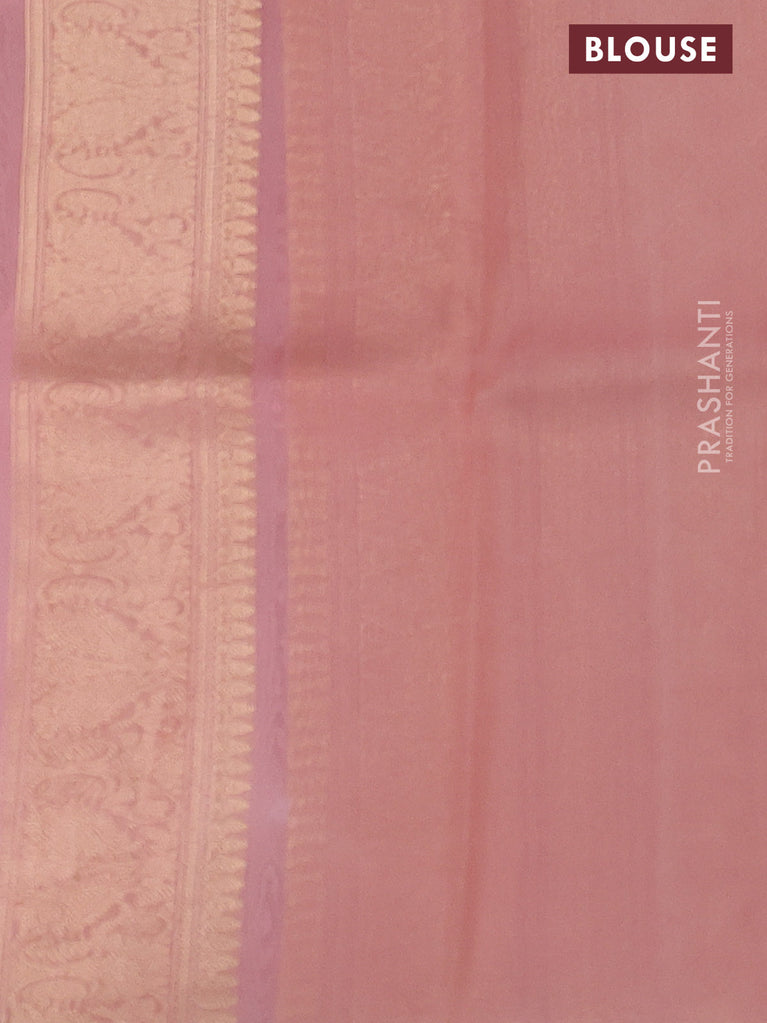 Banarasi organza silk saree pastel pink with silver & gold zari weaves and zari woven piping border