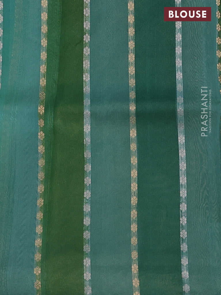 Banarasi organza silk saree teal green shade with silver & gold zari weaves and zari woven piping boder