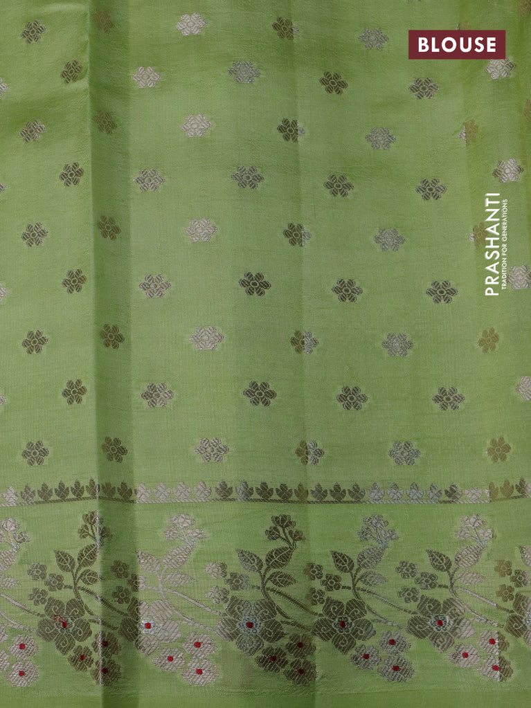 Banarasi organza silk saree pastel green with silver & gold zari weaves and zari woven piping border