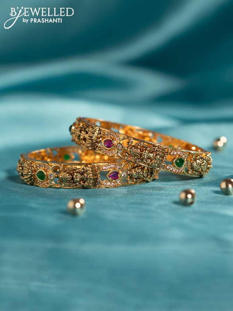 Antique beade haaram lakshmi pendant with kemp stones and pearl & golden beads hanging