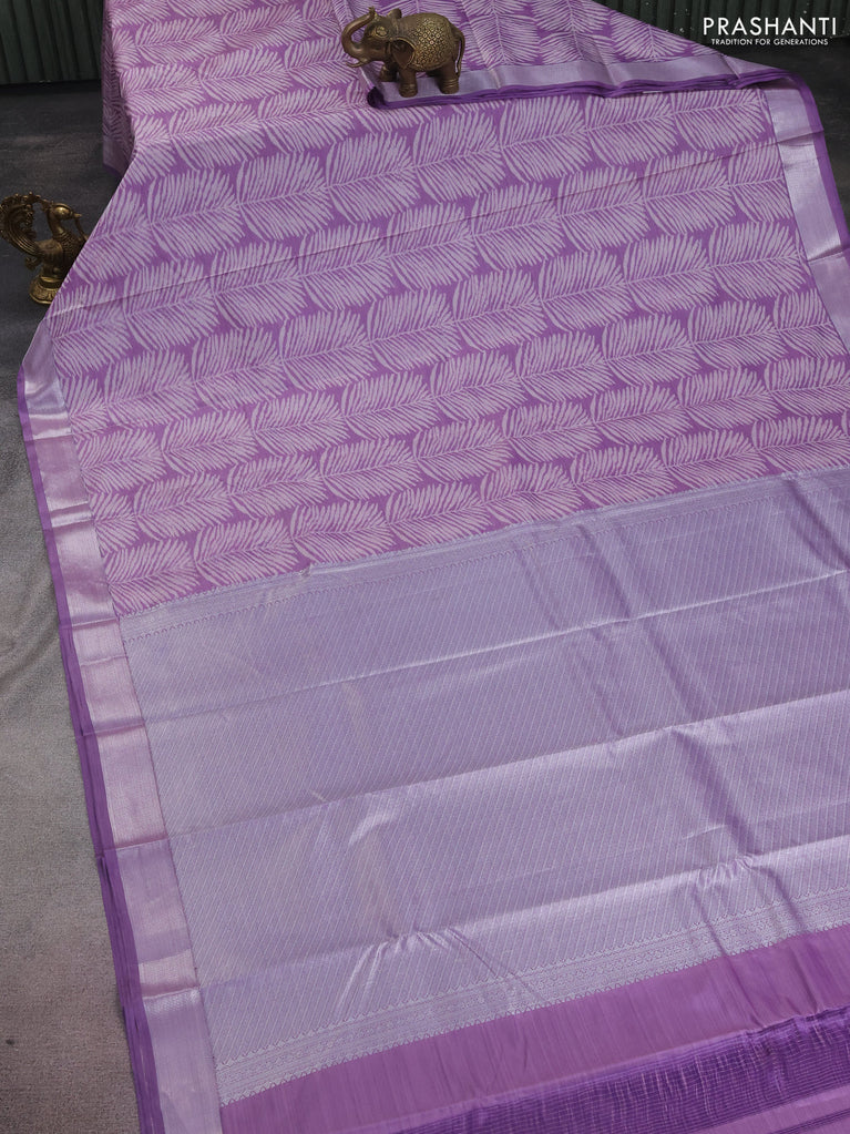 Bangalori semi silk saree lavender shade with allover ikat weaves and zari woven border