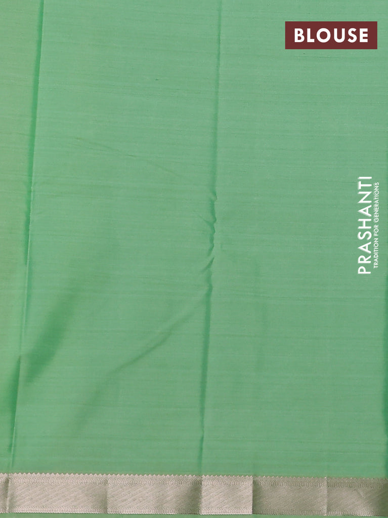 Bangalori semi silk saree light green with allover ikat weaves and zari woven border
