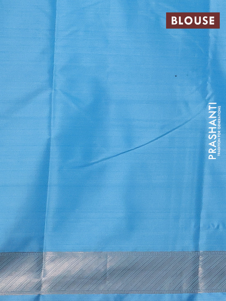 Bangalori semi silk saree light blue with floral design ikat weaves and zari woven border