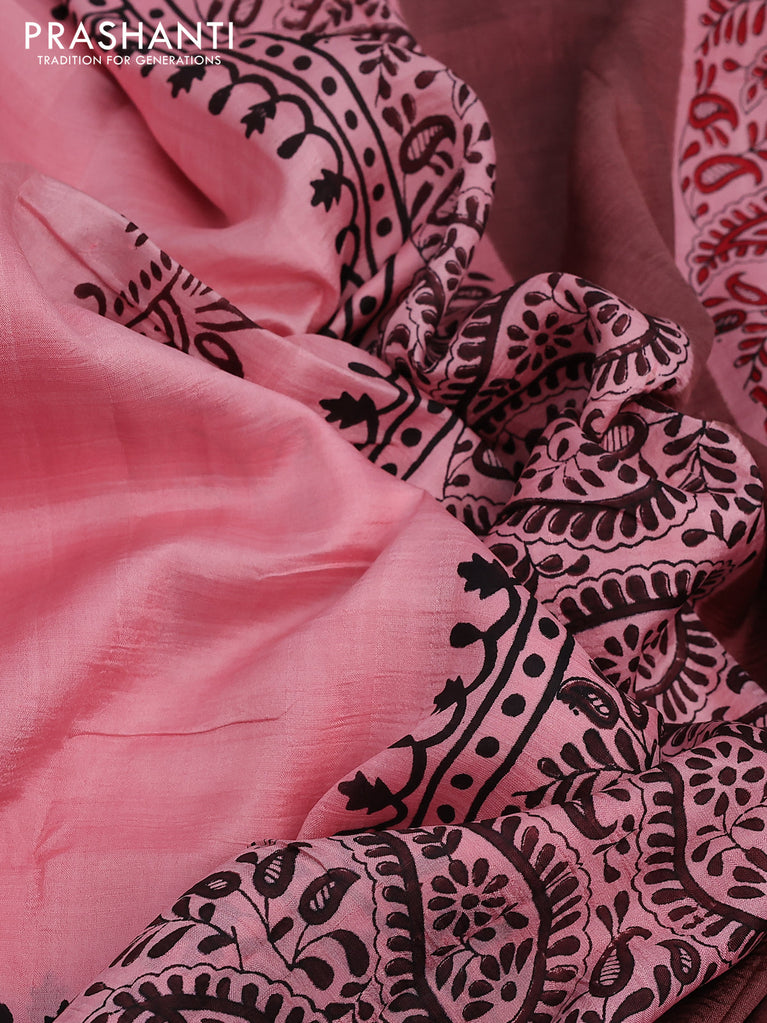 Bhagalpuri saree peach pink shade with butta prints and zari woven border