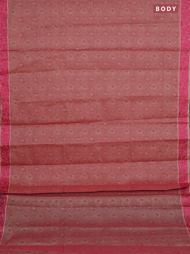 Coimbatore cotton saree magenta pink and light green with allover self emboss and thread woven border