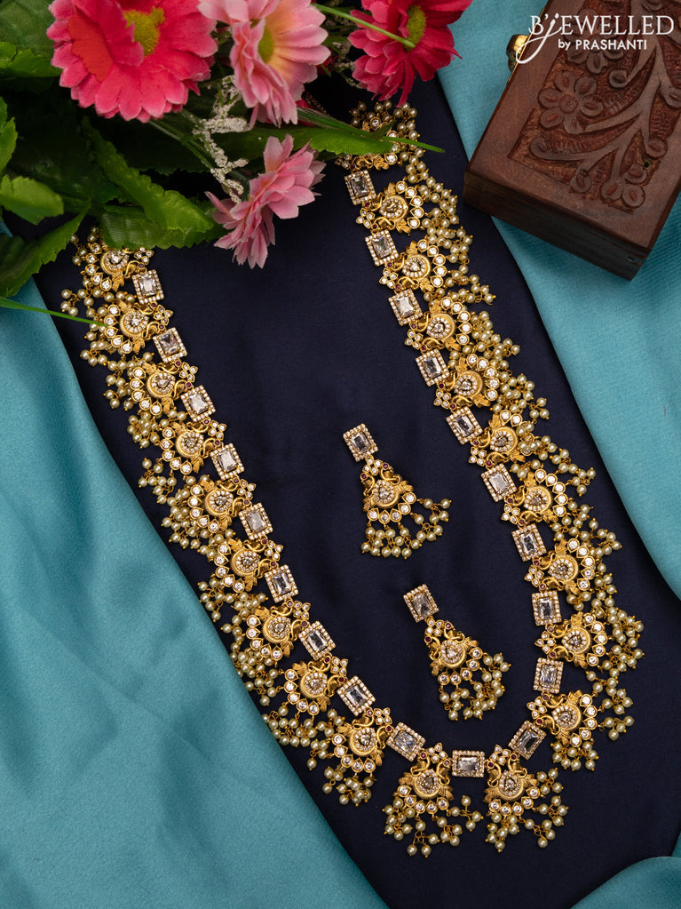 Antique guttapusalu haaram kemp & cz stones with tirupati balaji pendant and pearl hangings