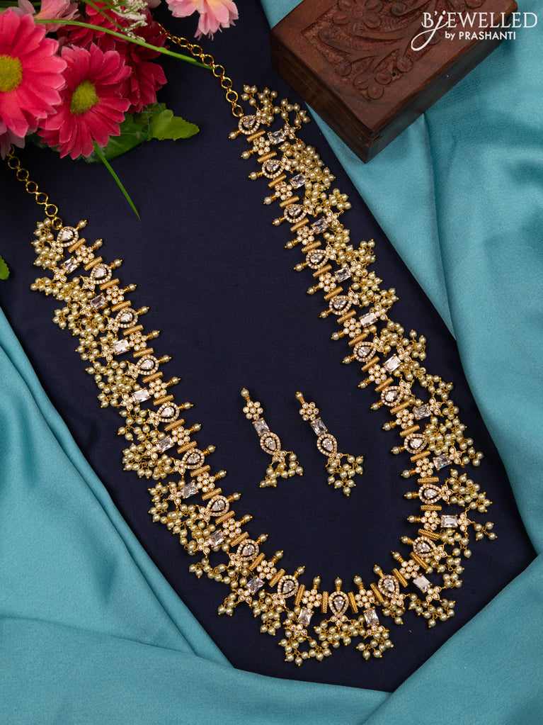 Antique guttapusalu haaram with kemp & cz stones and pearl hangings