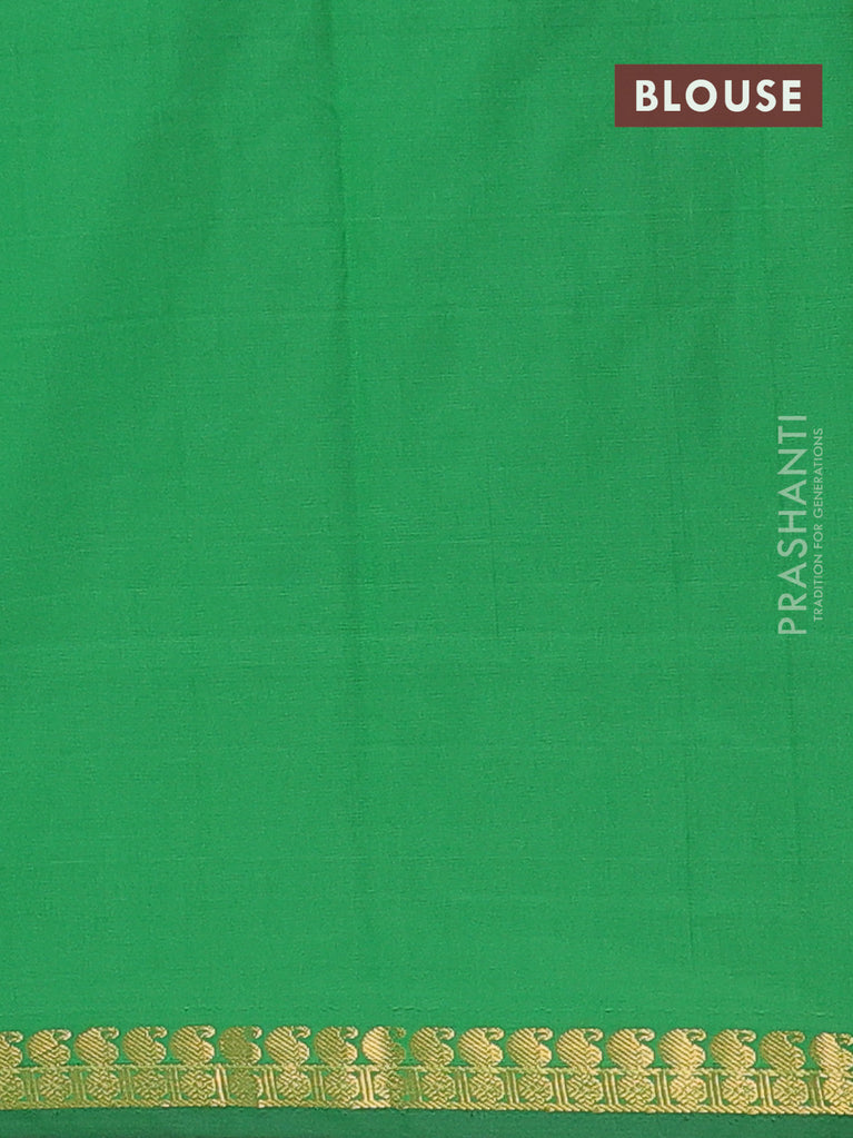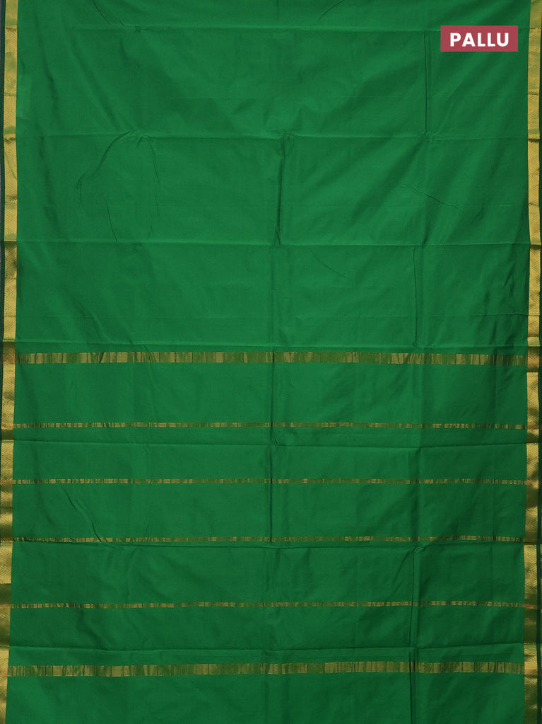 Arani semi silk saree green with allover silver zari weaves in borderless style