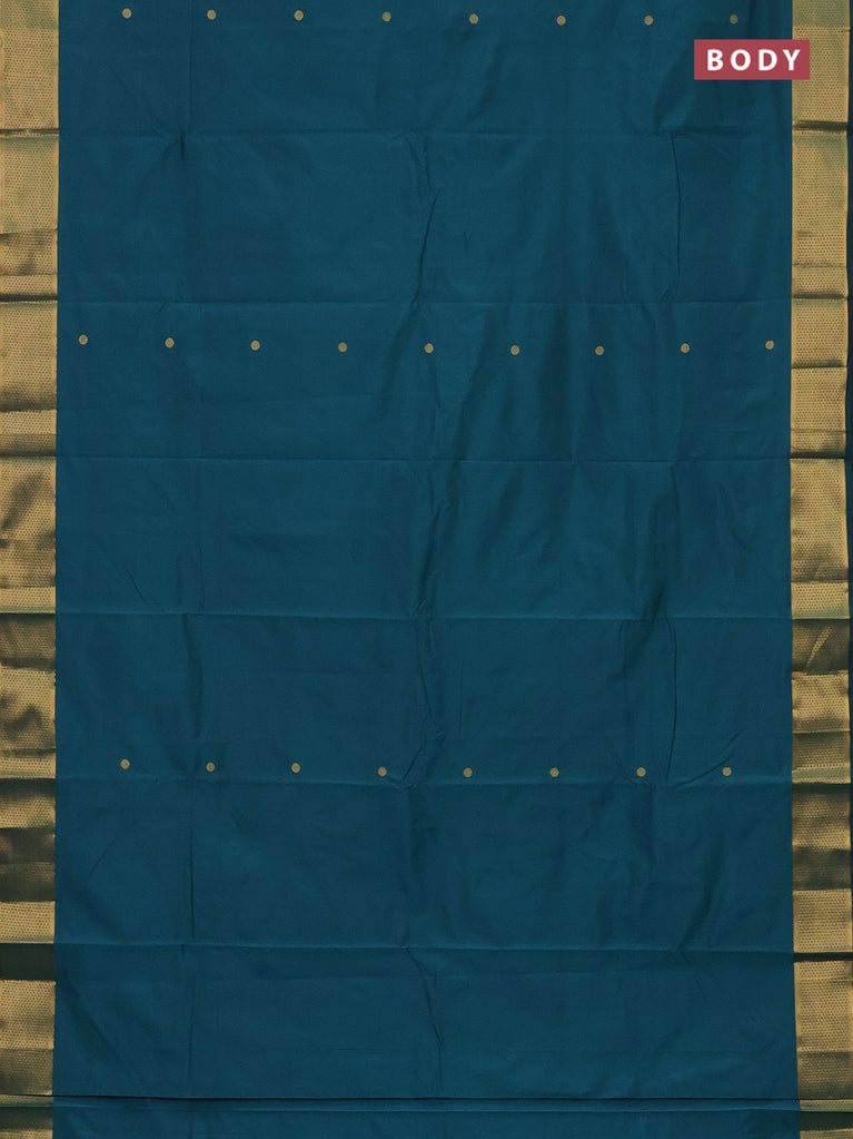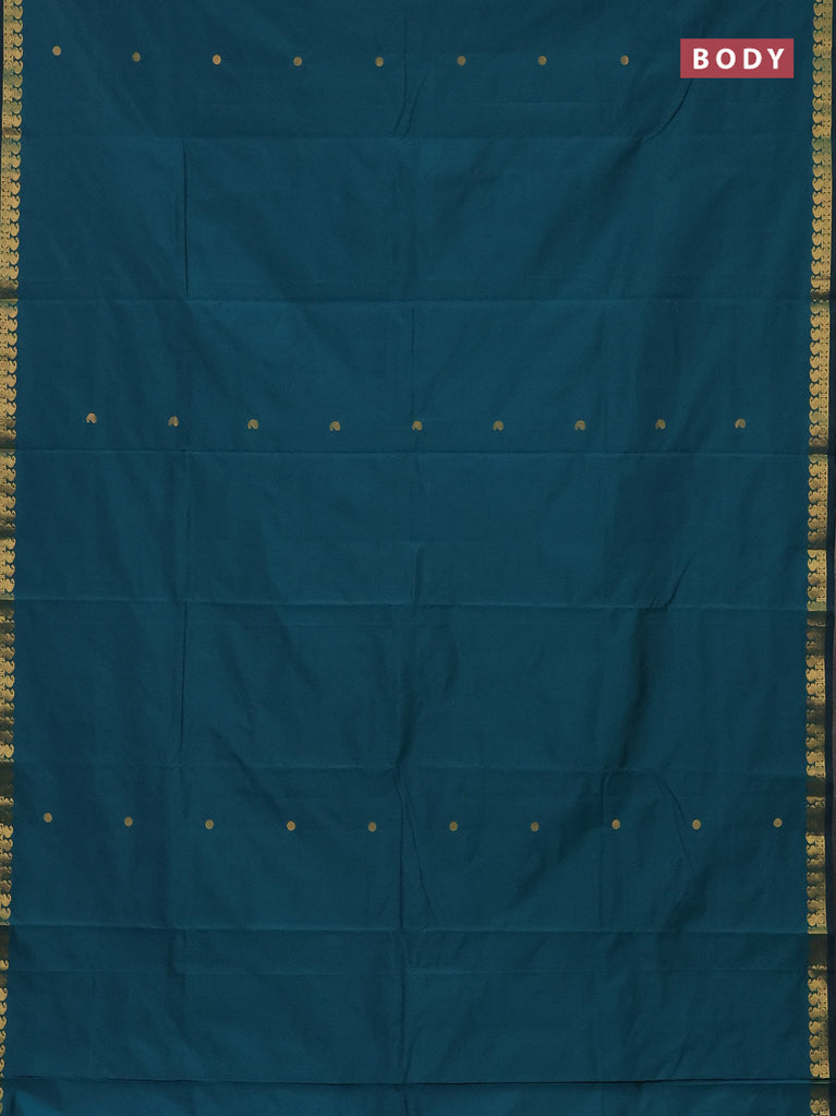 Arani semi silk saree peacock green with zari woven thilak buttas and zari woven border