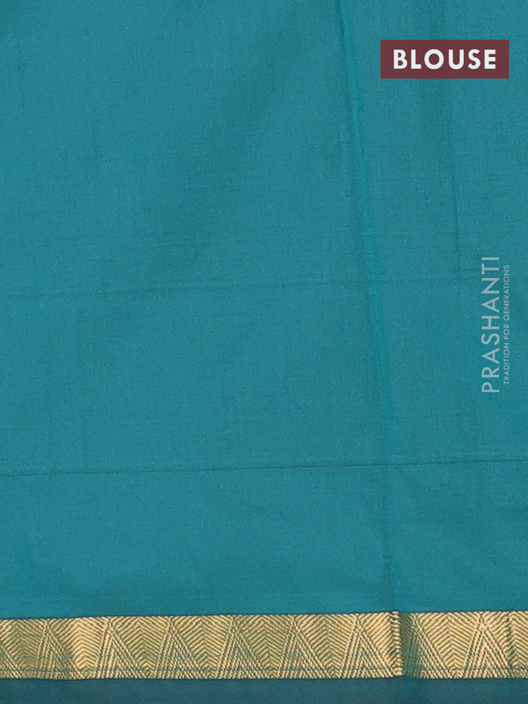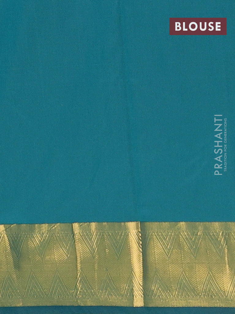 Arani semi silk saree peacock green with plain body and small zari woven border