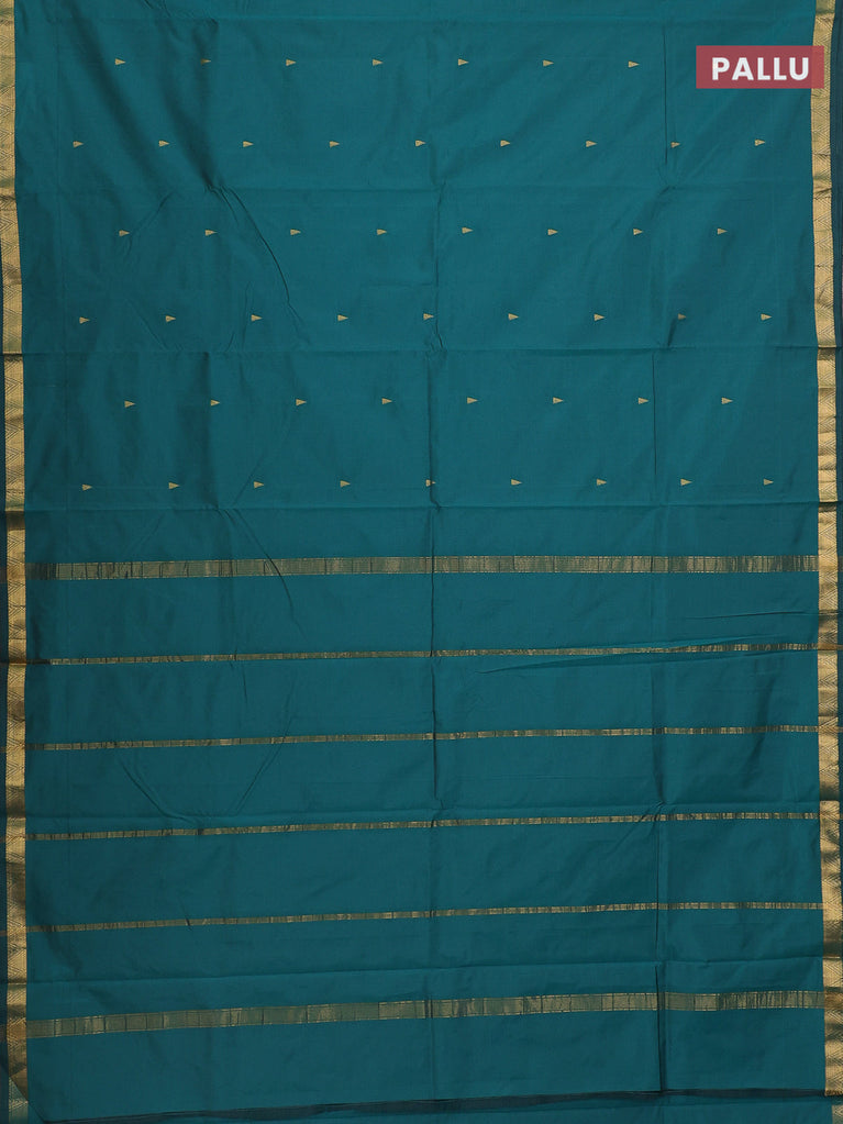 Arani semi silk saree peacock green with zari woven buttas in borderless style