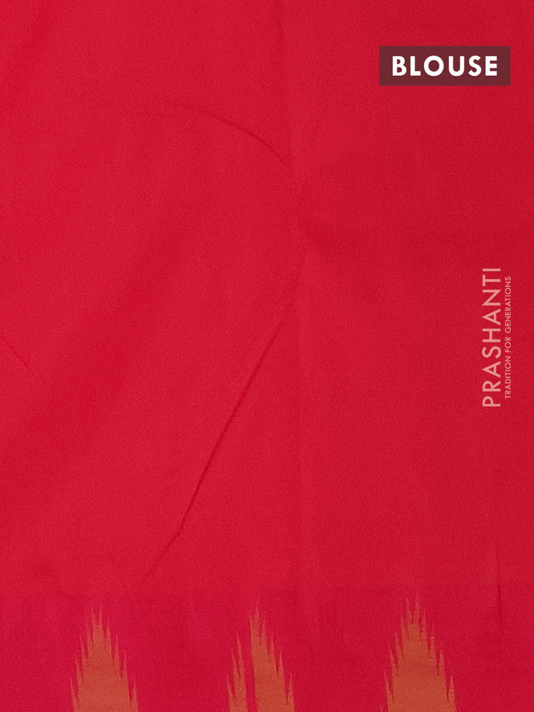 Arani semi silk saree teal green and maroon mustard with plain body and temple design border