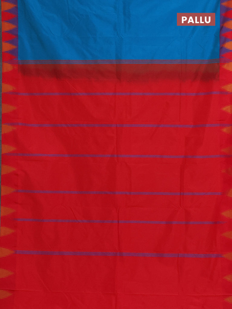 Arani semi silk saree teal blue and pink with plain body and temple design border