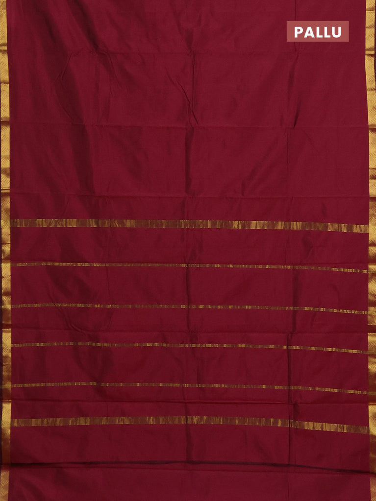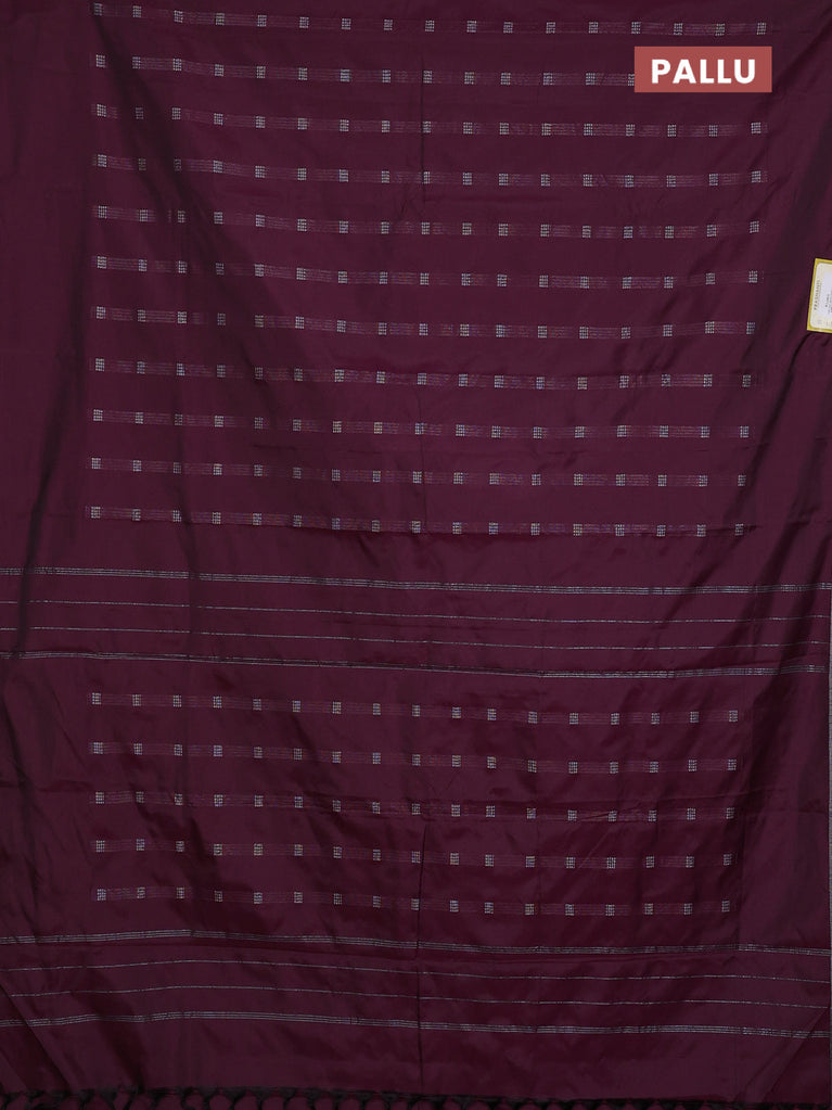 Arani semi silk saree wine shade with silver zari woven buttas in borderless style