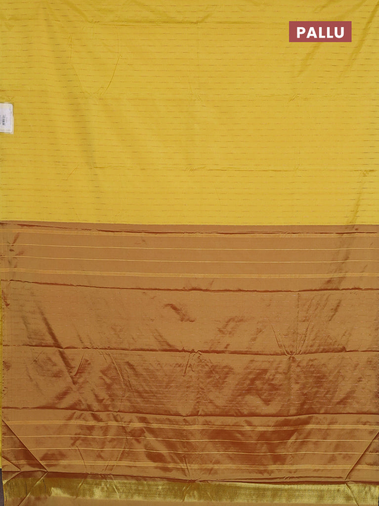 Arani semi silk saree yellow with zari woven buttas in borderless style