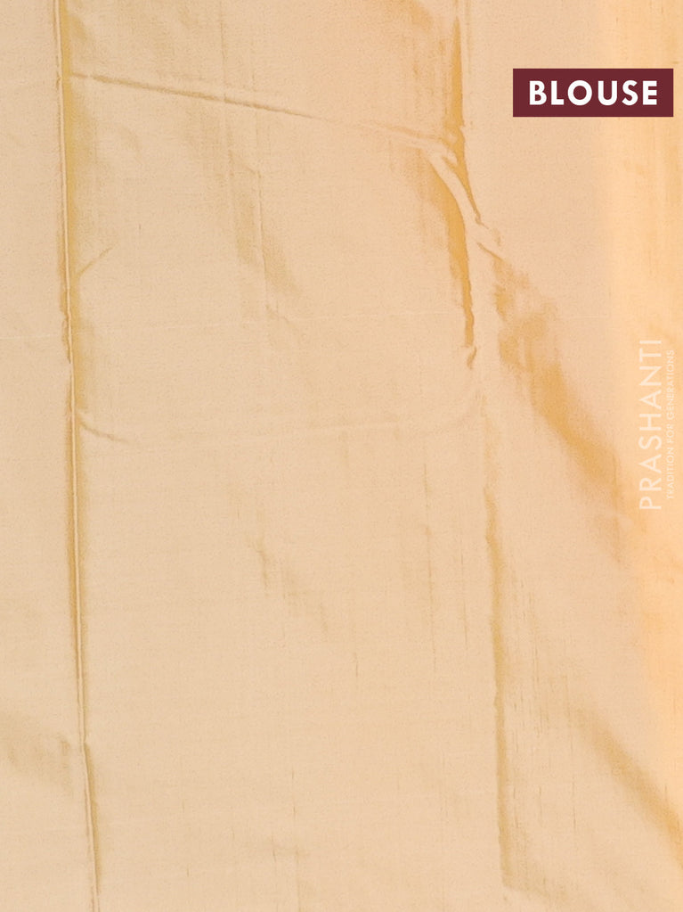 Arani semi silk saree yellow and violet with zari woven buttas and paisley zari woven butta border