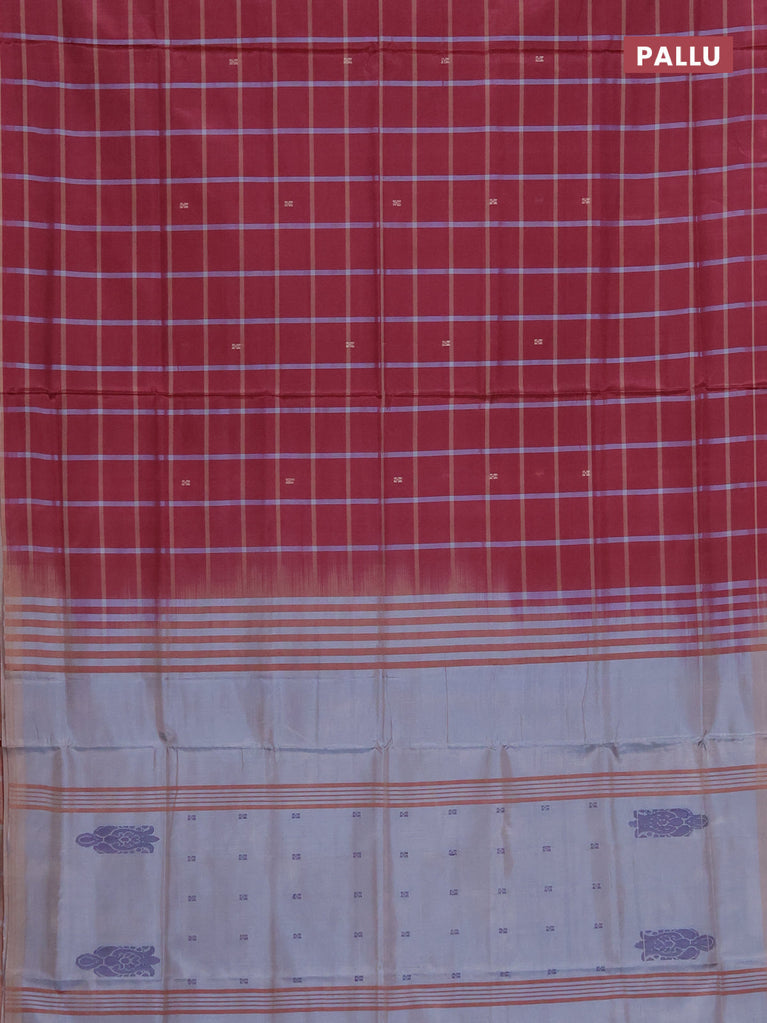 Banana pith saree maroon and dual shade of grey with allover checked pattern and piping border