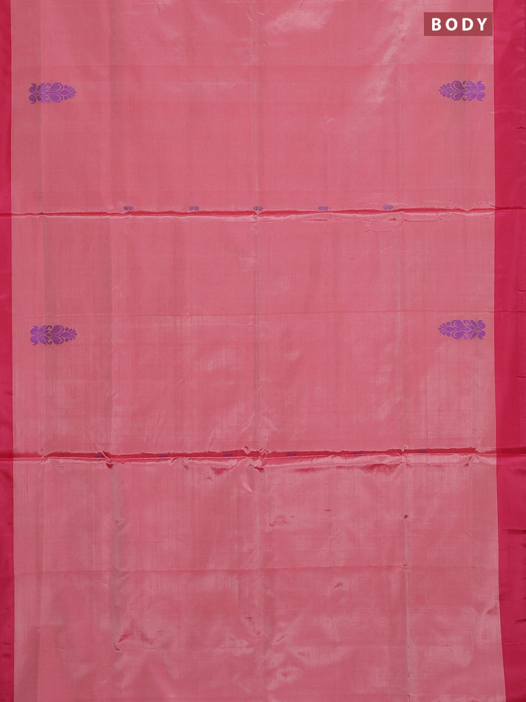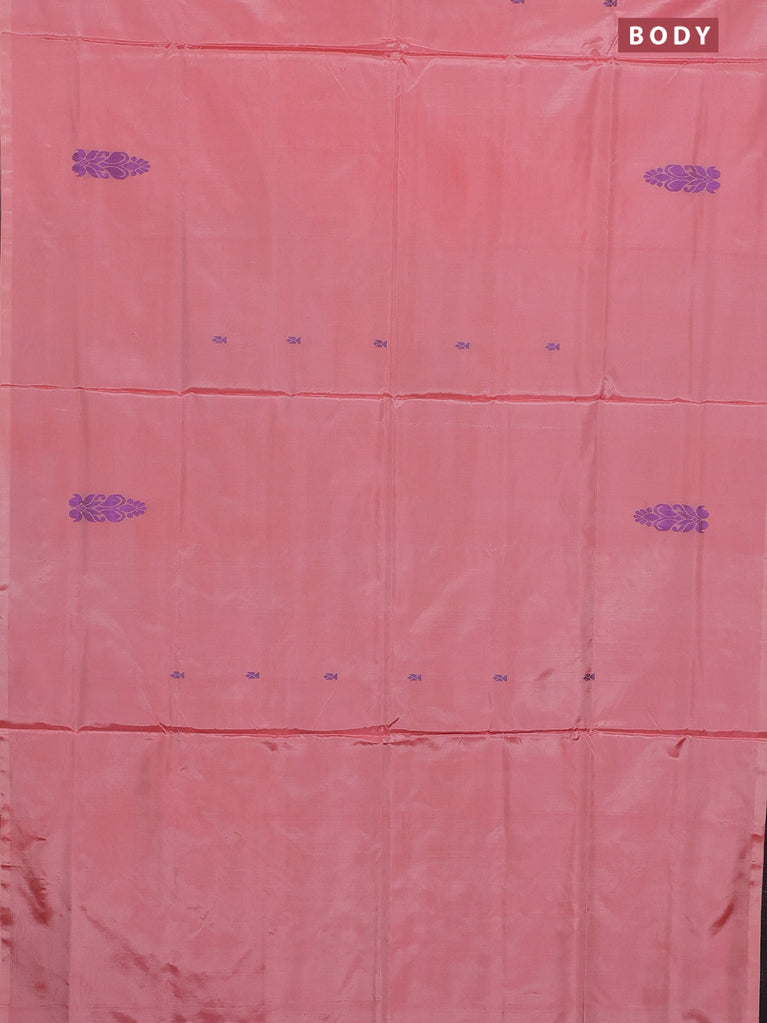 Banana pith saree light pink and rust shade with thread woven buttas in borderless style