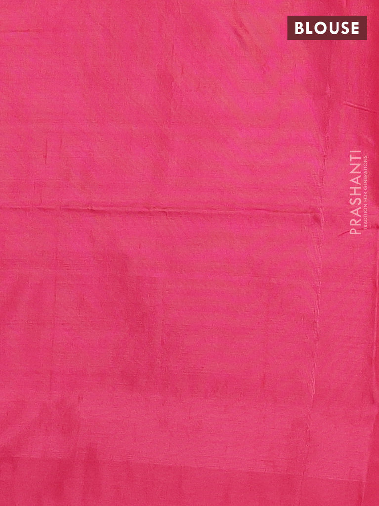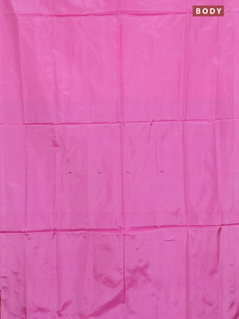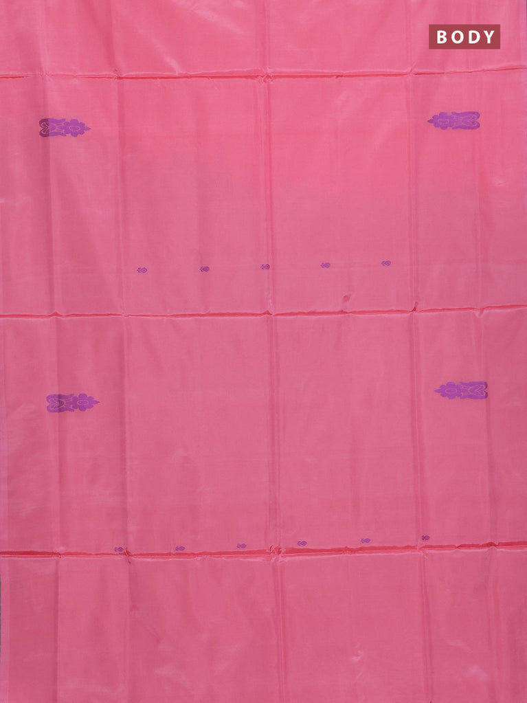 Banana pith saree pink shade and green with thread woven buttas in borderless style