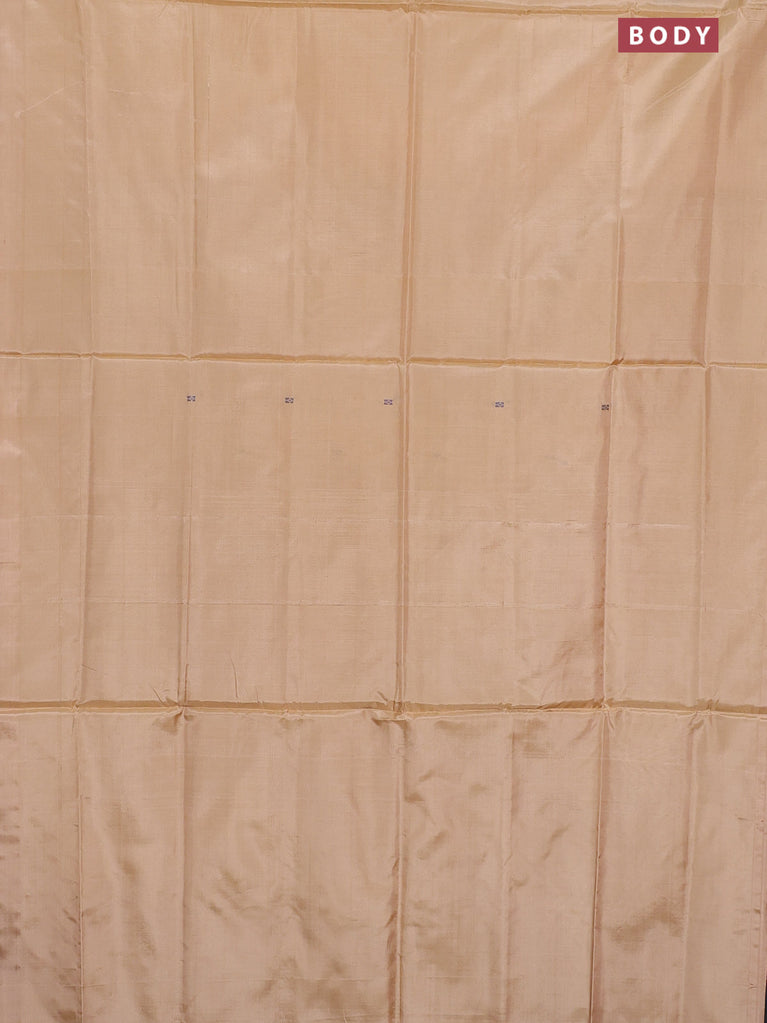 Banana pith saree sandal and pastel peach with thread woven buttas and contrast border