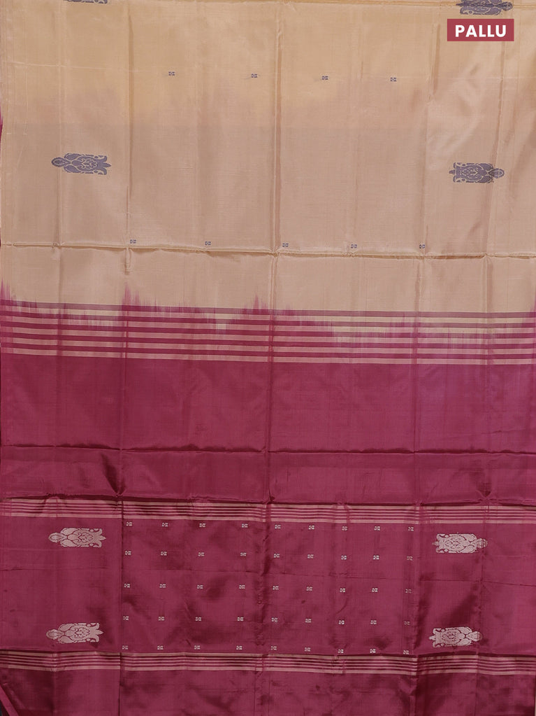 Banana pith saree purple and orange with thread woven buttas in borderless style