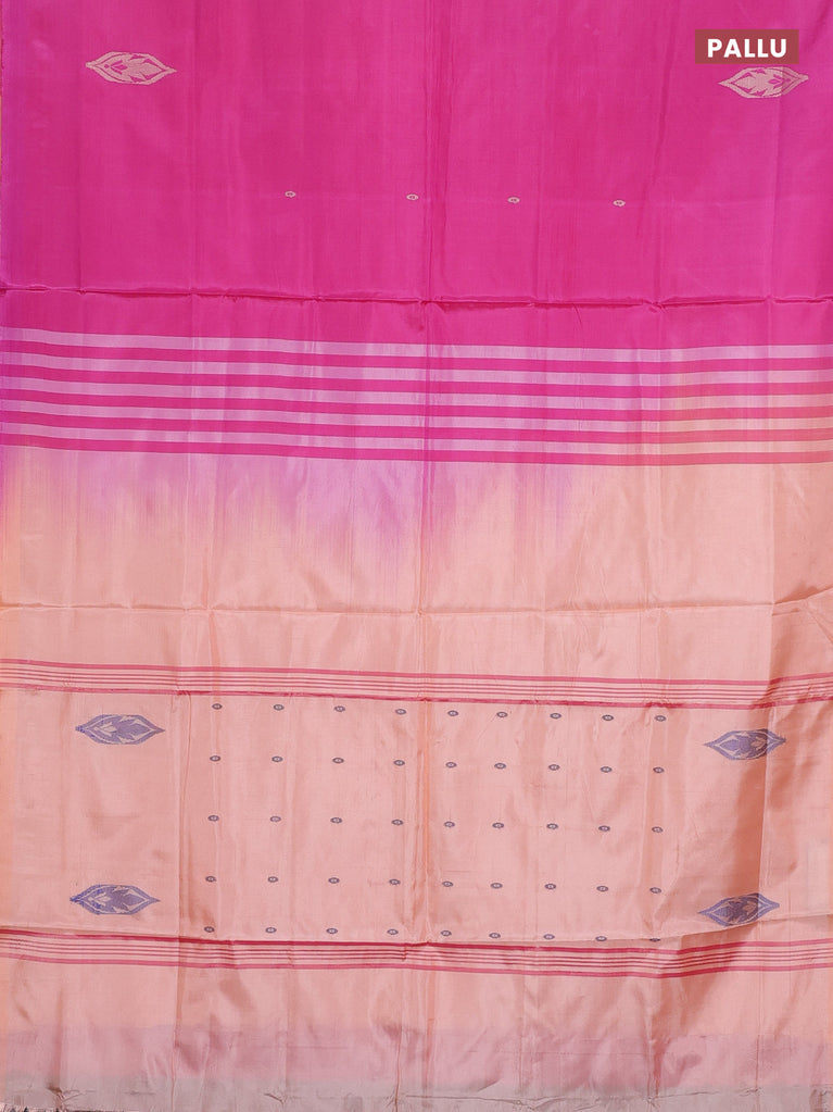 Banana pith saree pink and pale orange with thread woven buttas in borderless style