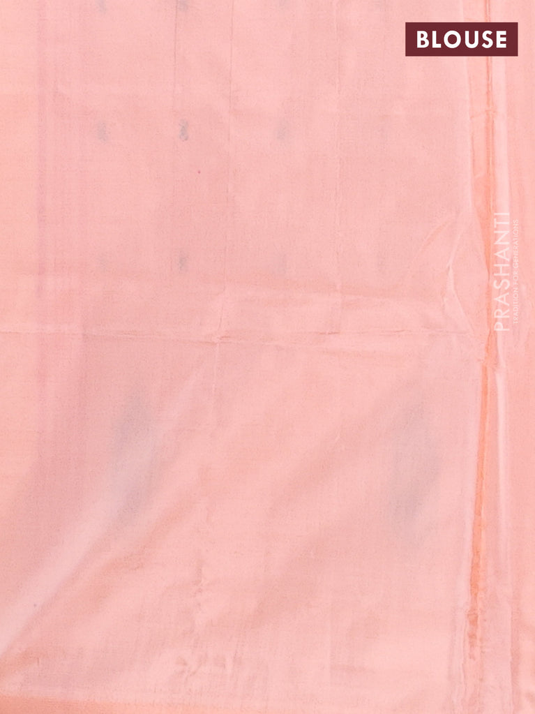 Banana pith saree peach shade and blue with thread woven buttas in borderless style