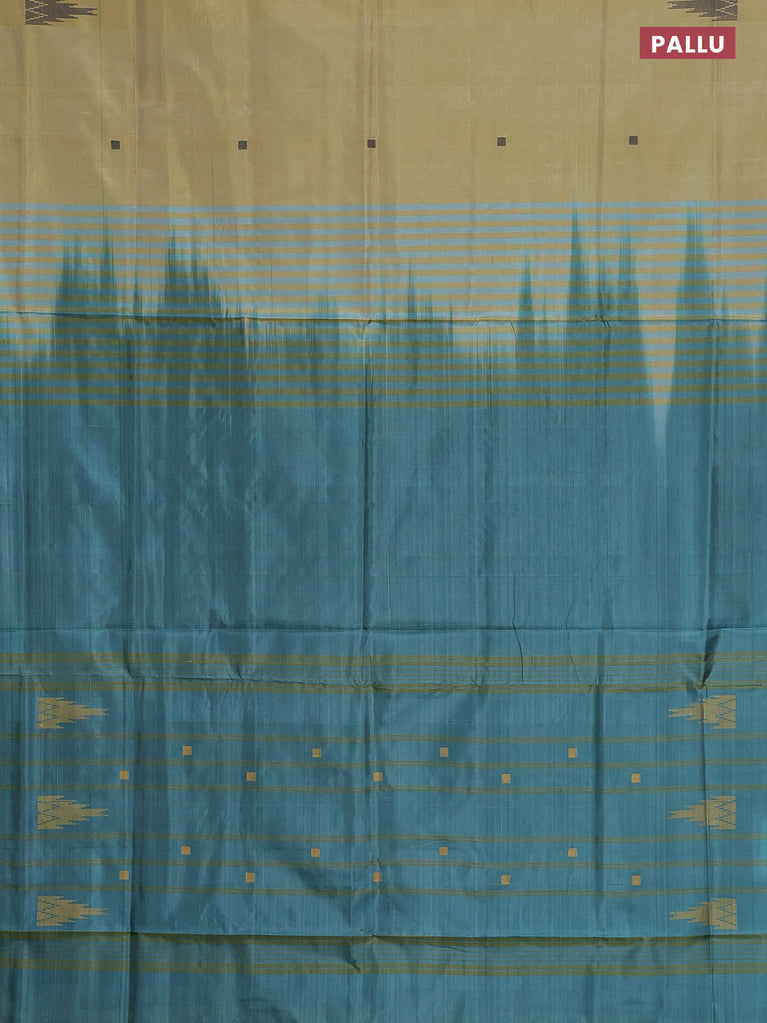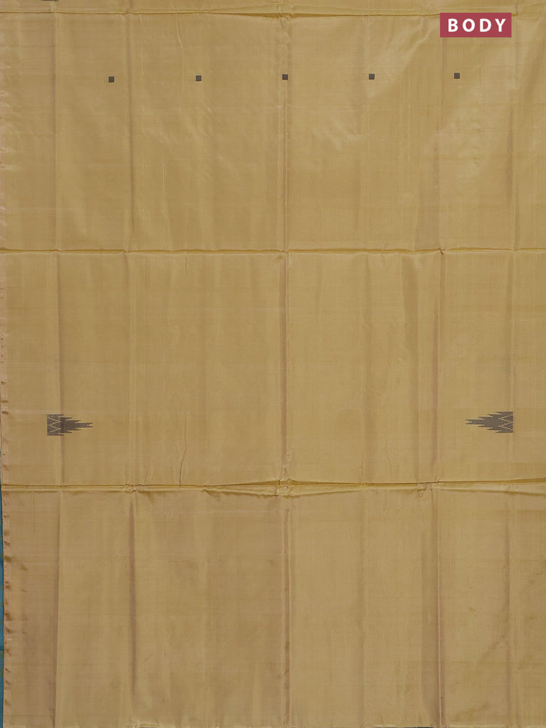 Banana pith saree pale yellow and teal green shade with thread woven buttas in borderless style