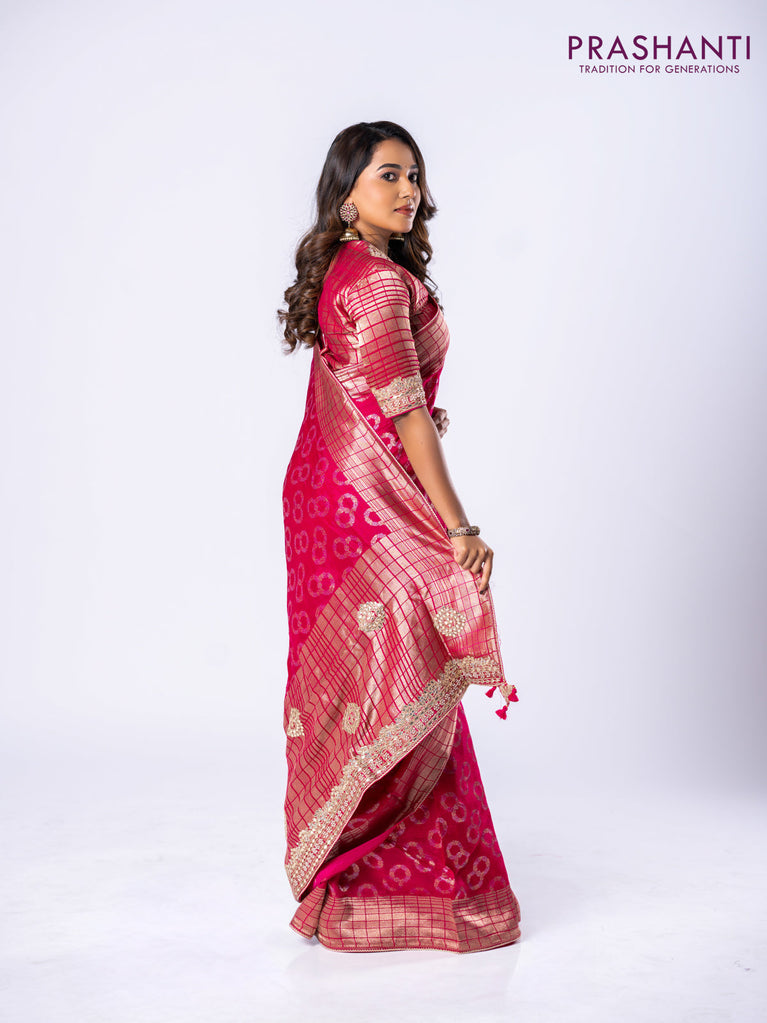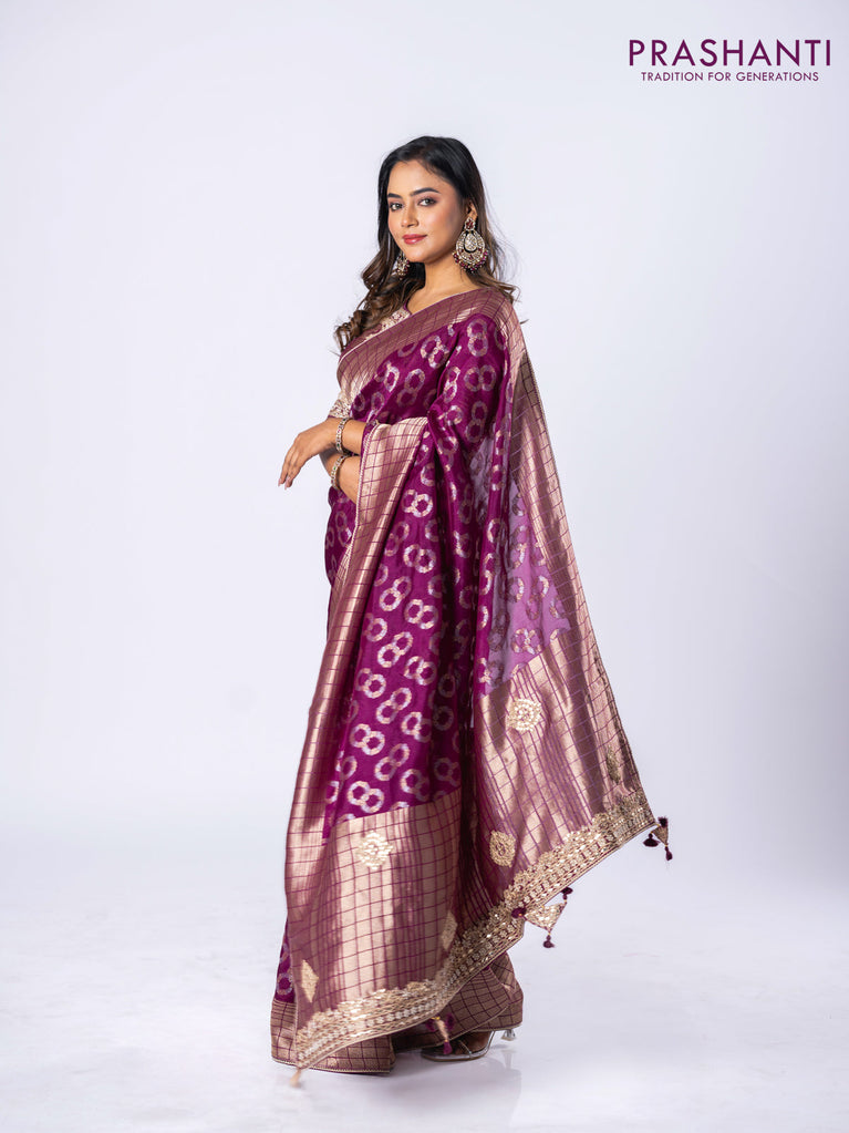 Banarasi matka tissue saree wine shade with allover zari woven brocade weaves in borderless style