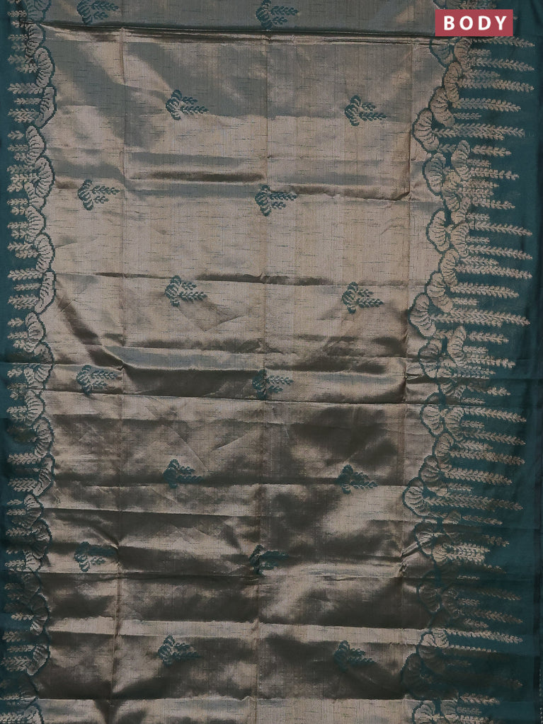 Banarasi munga tussar silk saree grey with allover zari weaves and lace work border