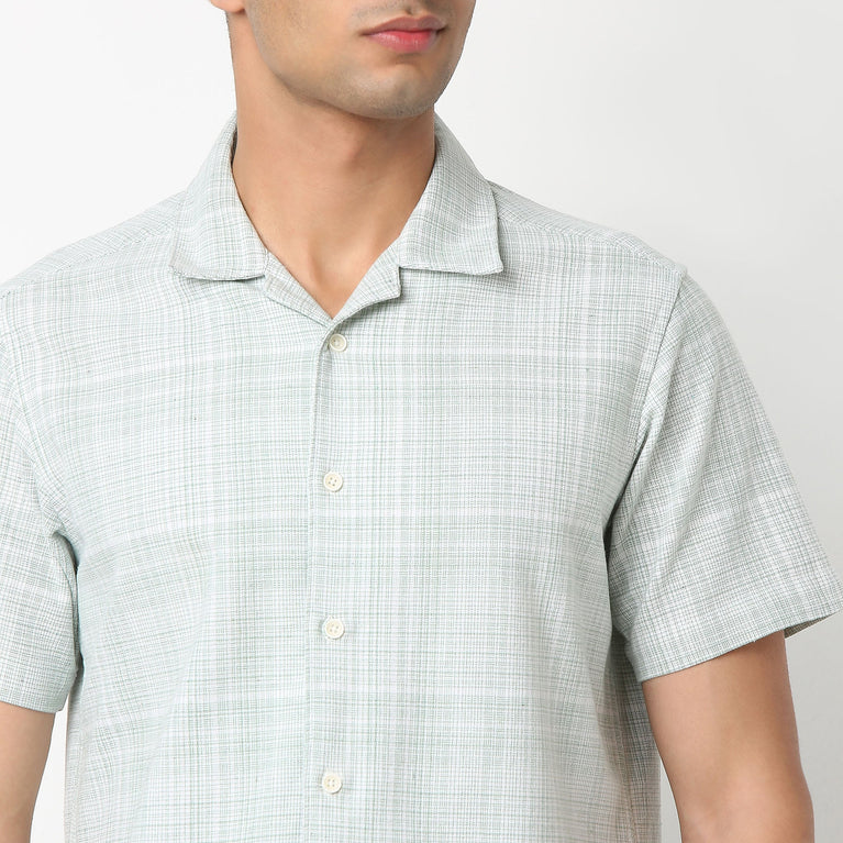 Camp Collar Half Sleeve Striped Structured Solid Bae Shirt