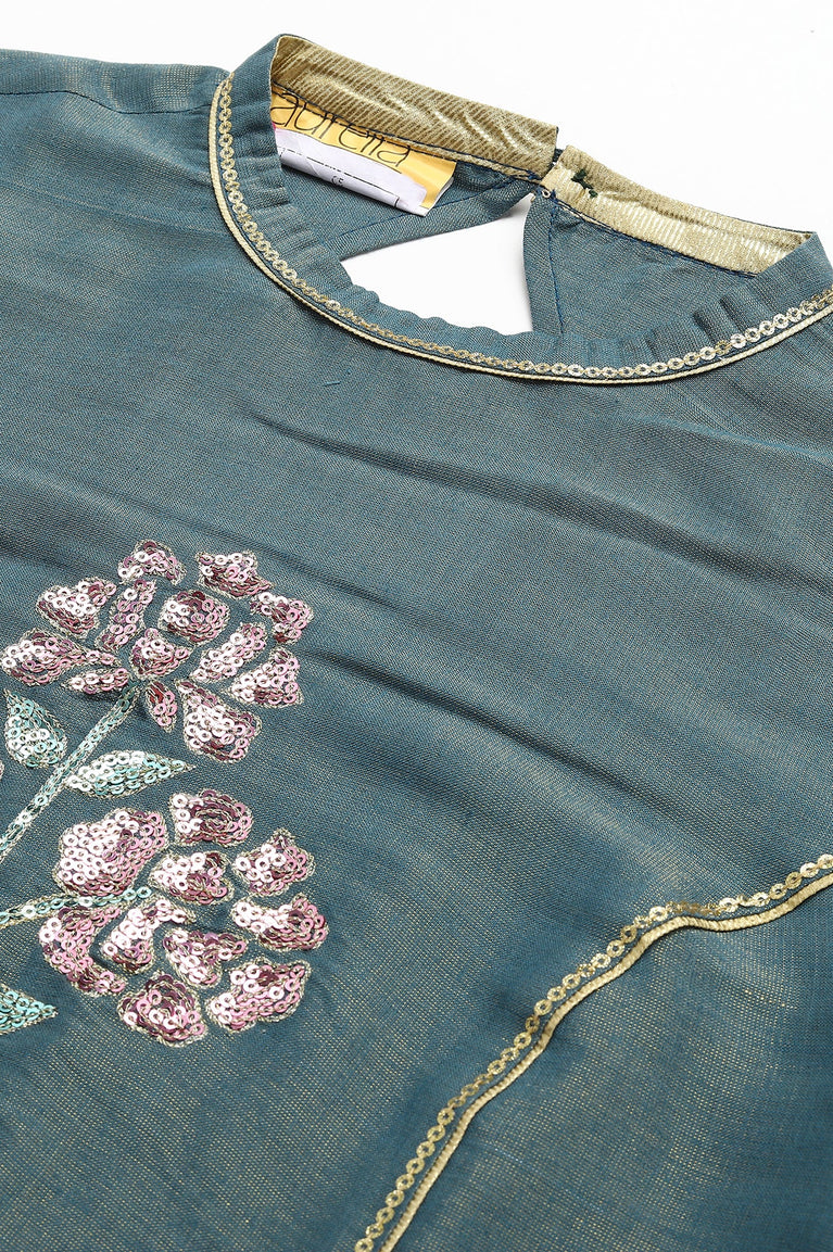 Blue Embellished Festive Kurta, Palazzo & Dupatta Set