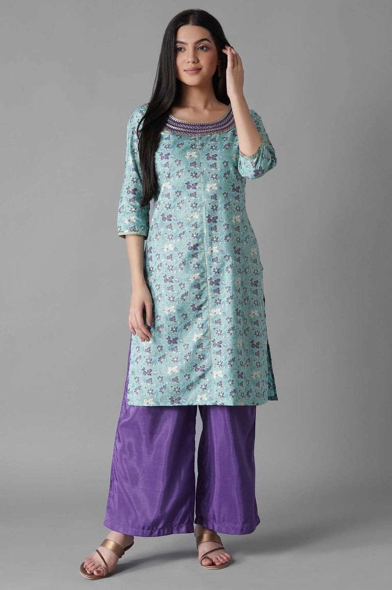 Be it family get together or a light festivity, this ethnic kurta and palazzo set is a must-have. Style yourself in this pretty feminine set, which includes a straight fit kurta and paired with printed straight palazzo.