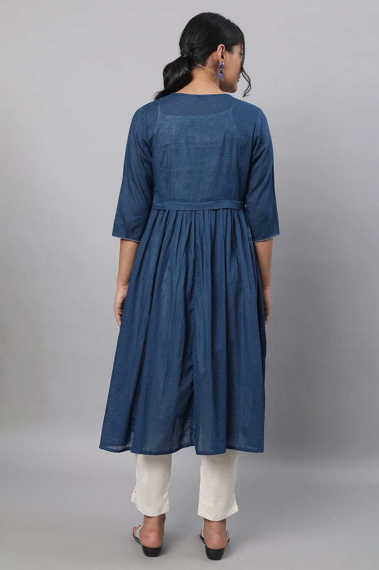 For Your Comfy And Stylish Summer Look, We Have Got You This Pretty And Elegant Blue Geometric Print Kurta By Aurelia. The Kurta Has Band Collar With Button Placket.