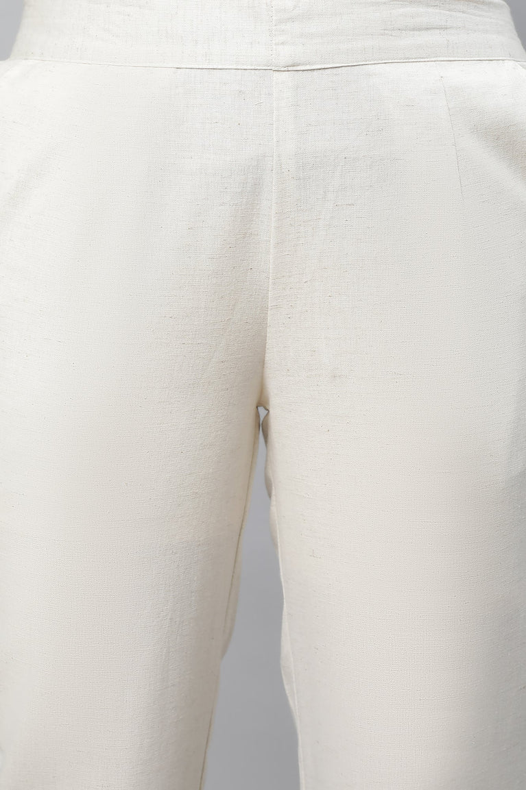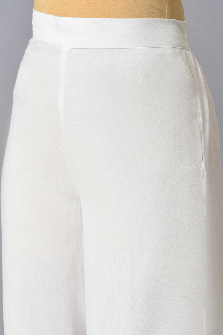 Micro-geometric precision weaving defines your traditional style with this flared palazzo. Featuring a geometric print and partially elasticated waistband, it offers high comfort with its premium woven cotton fabric. Imagine pairing this ankle-length fashion bottom with a kurta and sandals for a trendy look. A must-have in your wardrobe for casual outings.