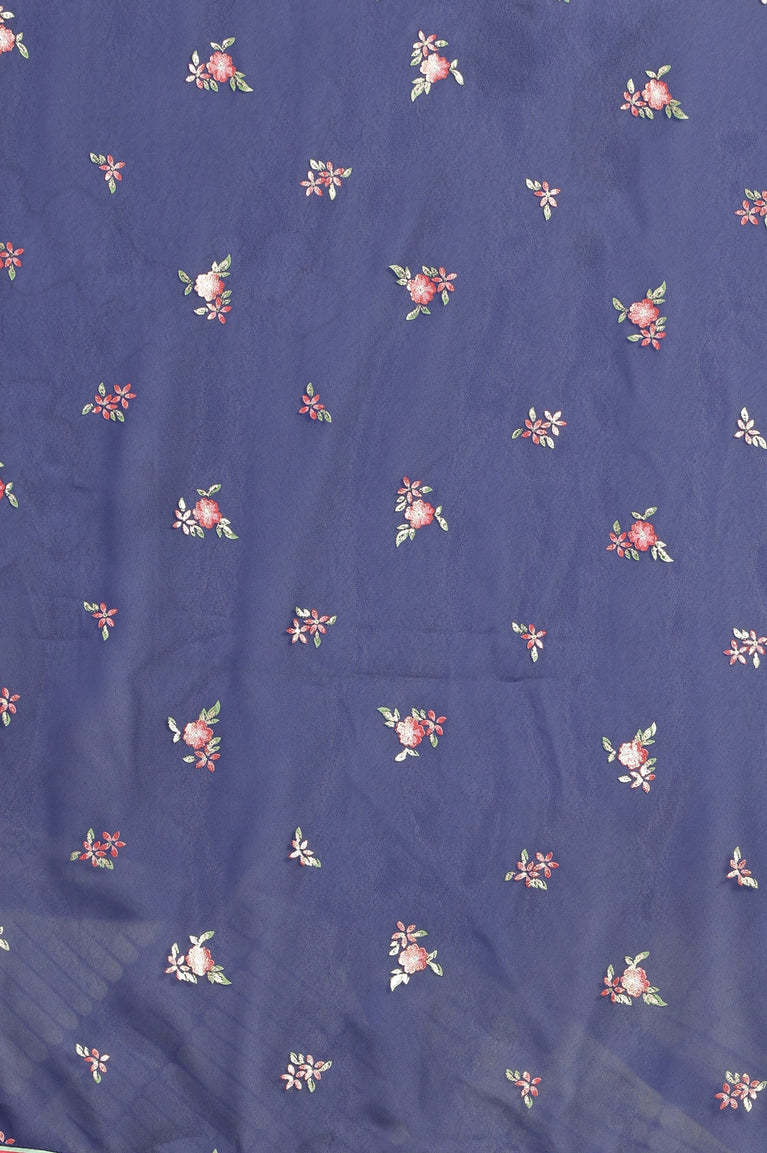 Blue Floral Printed Flared Kalidar Dress and Dupatta Set