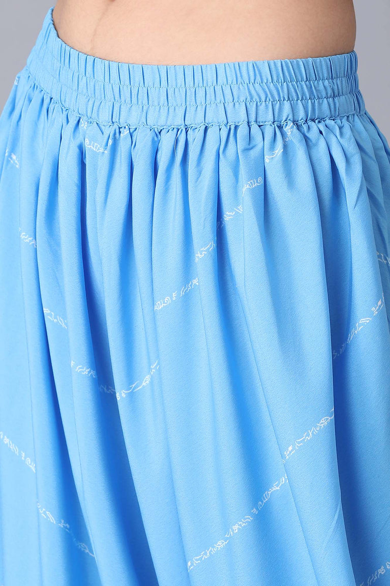 Blue Printed Flared Palazzo