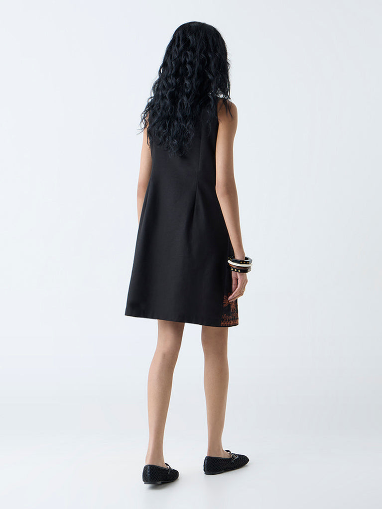 Bombay Paisley Black Embroidered Cotton-Blend A-Line Dress