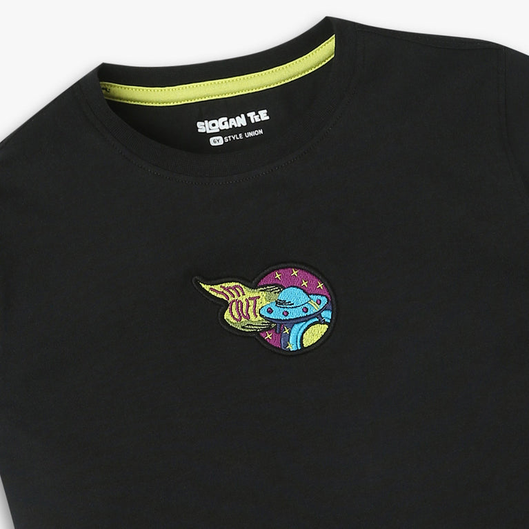 These solid pattern t-shirt has crew neck and half sleeve. Made from cotton, your kid's feel comfortable wearing the product.